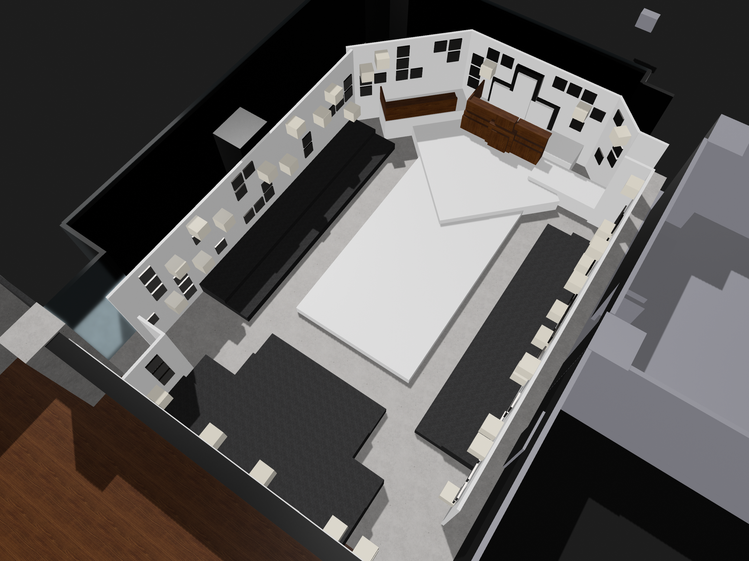 When the jury delivered a guilty verdict, the entire space flooded red. Not guilty turned everything green. The environment became a character in the story, reacting to human decisions with cold, immediate judgment. It looked like a video game - which was intentional. I wanted the audience to feel like they were inside a system, not just watching one.