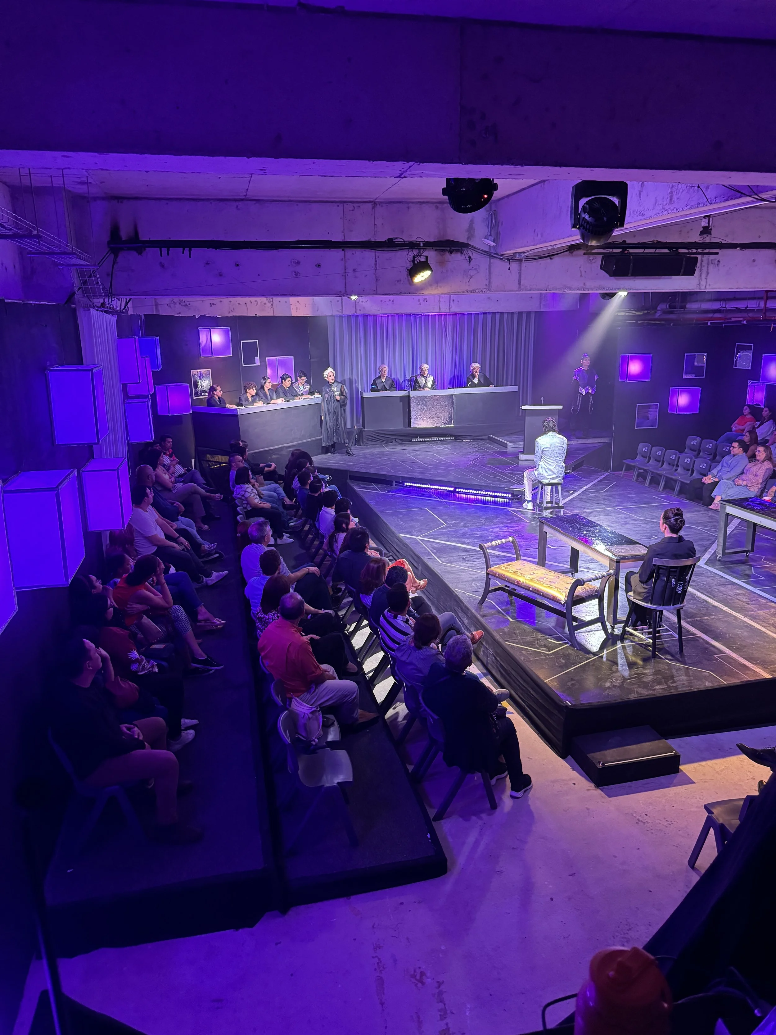 Returning to this material after three years was an exercise in muscle memory and radical reimagining simultaneously. Some blocking came back instinctively - the shape of an argument, the rhythm of a cross-examination. But the set was different, the movements were different, and the robots required completely new choreography.