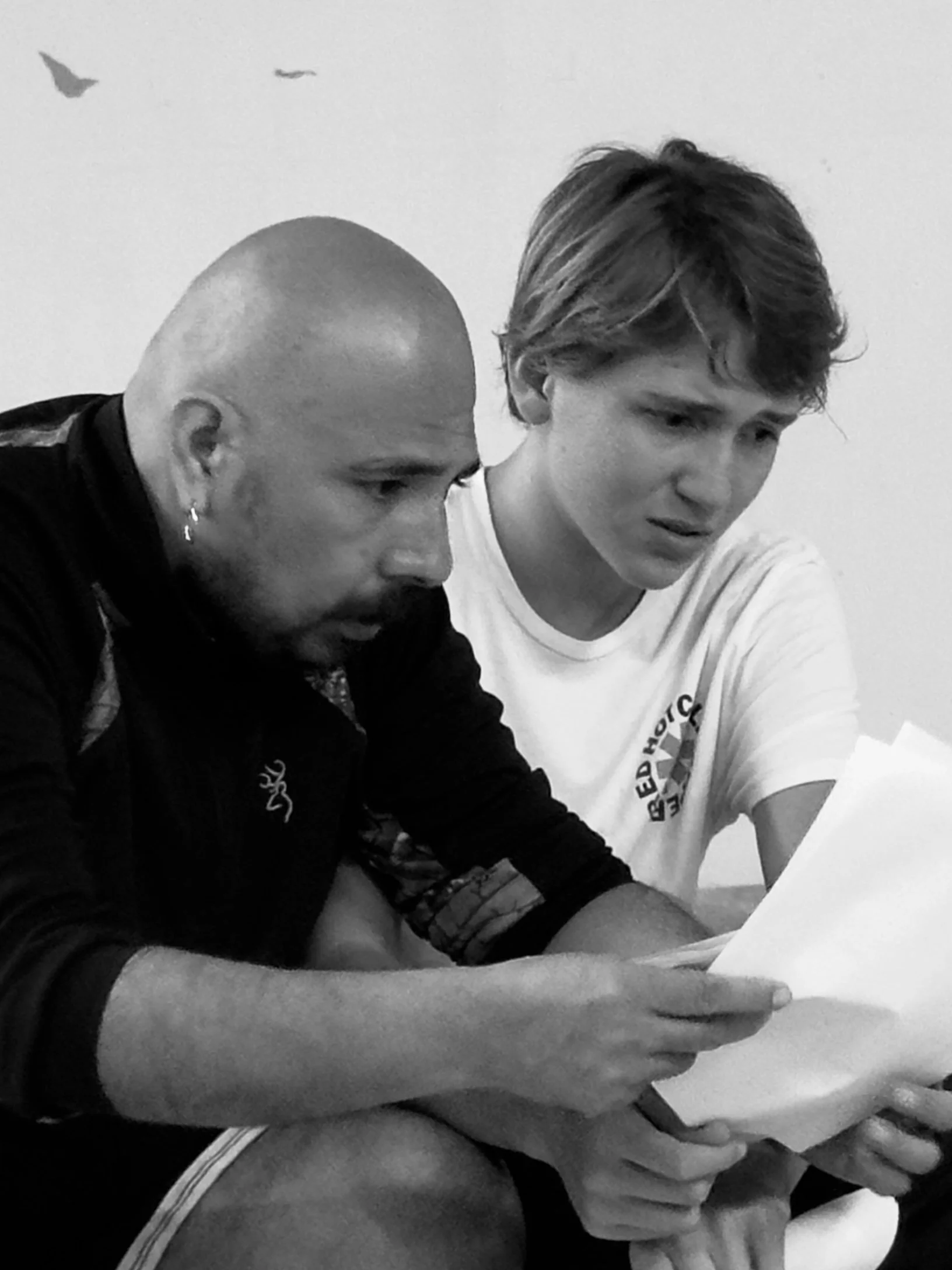 Migue leading our cast during technical rehearsals on top of our newly minted turntable.
