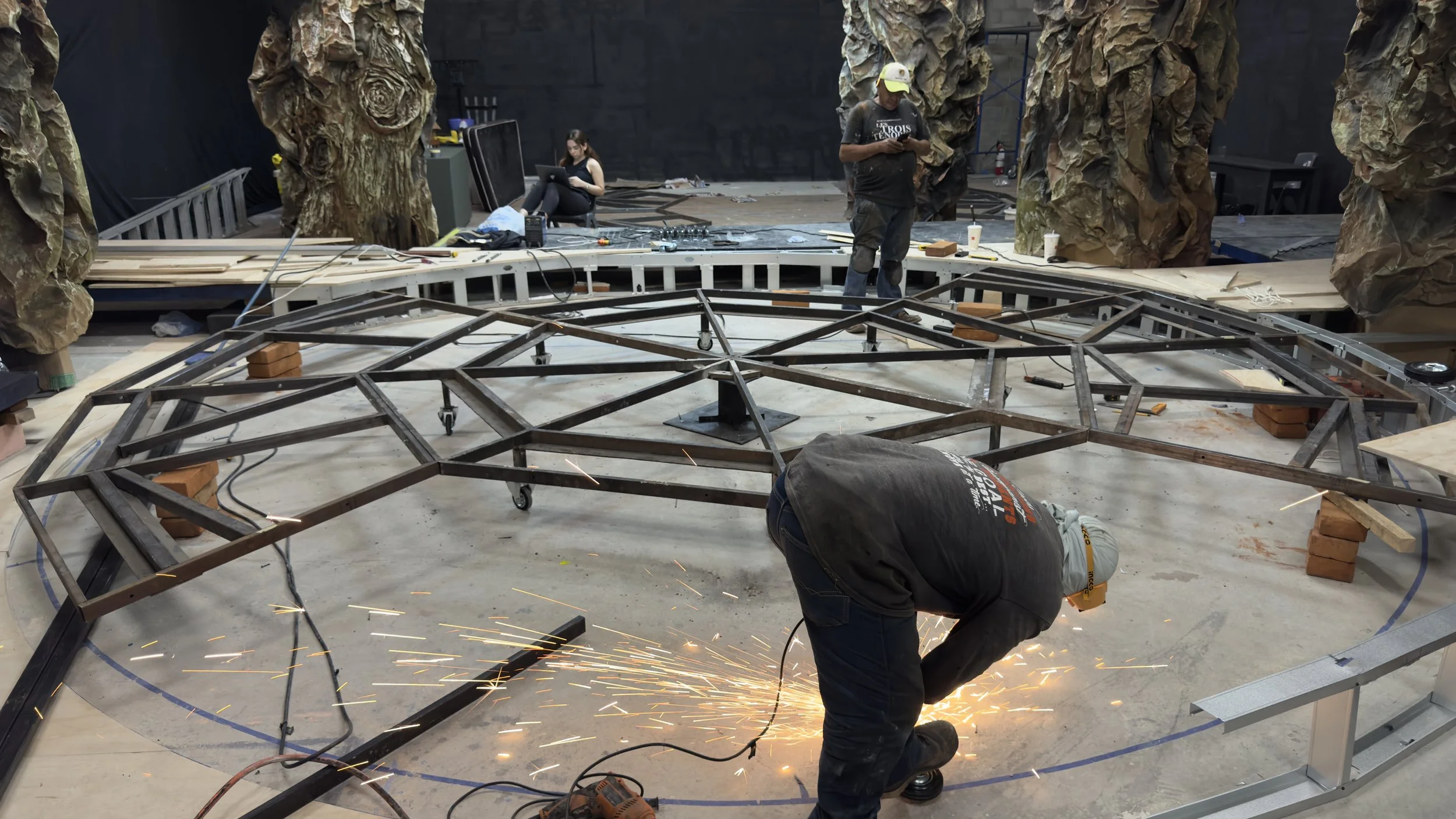 We'd used this same turntable before on Wendy & Peter Pan and Frankenstein, but those productions taught us what not to do. The original mechanism required too much height - the motors, the support structure, everything sat too high off the ground. In a black box theatre where every centimeter of vertical space matters, that was unacceptable. We had to engineer something that would sit lower while supporting significantly more weight.